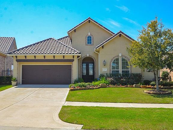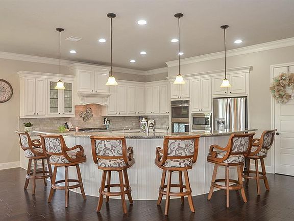 Resort living at its best. Stunning sunsets from this amazing all brick one story almost 3000 sq/ft home on the water with a beautiful POOL/SPA & outdoor covered patio, bar & grill area, fire pit plus extra yard. An entertainers Dream home. The kitchen is open to the dining & living areas. Hardwood dark wide plank floors throughout the home w/beautiful tile in all wet areas. The Island Kitchen has upgraded granite, an abundance of custom cabinets & counter space, "breakfast" bar that will seat EIGHT! The windows have a combination of Plantation Shutters or automated shades that are remotely controlled. The Magnolia Media Room (media screen, projector and sound system incl.) can be a third bedroom. An automated SOUND SYSTEM allows you to watch TV or listen to music while working inside or out. Water Softener for entire home. The POOL/SPA & multiple entertainment areas in the resort backyard has beautiful views of the lake. Gated section of well kept pocket within Cross Creek Ranch.