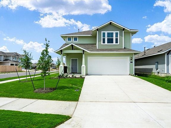Turnkey home in Hymeadow ready for lease! This beautiful home is set on a corner lot with great curb appeal and a welcoming covered front porch where you can sit and relax with your morning cup of coffee. The interior is enveloped in light and comfort with elegant ceramic tile flooring throughout the main floor. The open concept living areas are ideal for entertaining, including the modern kitchen appointed with a large center island and breakfast bar, sleek granite countertops, 42" cabinetry, and upgraded stainless-steel appliances including a gas range. A secondary bedroom and full bathroom are located on the main floor - perfect for guests. Head upstairs to the spacious primary suite complete with a vaulted ceiling, a large walk-in closet, and an en-suite bath featuring a tub/shower combo and extended quartz-topped vanity. The second floor also incorporates two additional bedrooms, a shared guest bathroom, and a cozy loft space where you can watch movies or play board games. The backyard is fully fenced with lots of green space for activities, lounging, or grilling with family and friends. Conveniently located near everyday conveniences, a variety of shops, and restaurants. Only 30 miles outside of Austin. Refrigerator, washer, and dryer included. Schedule a showing today!