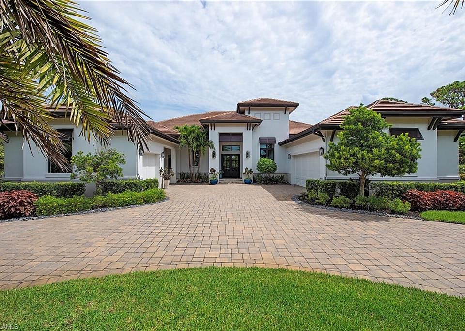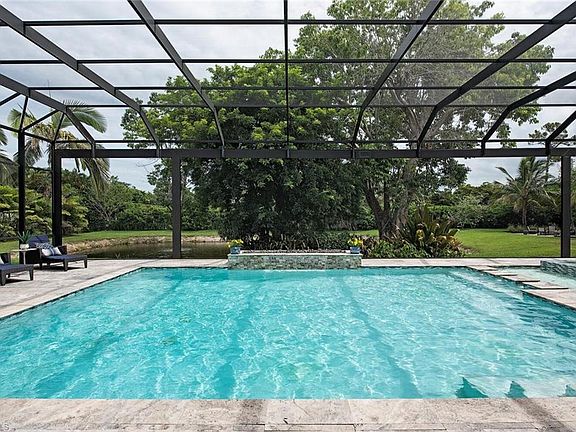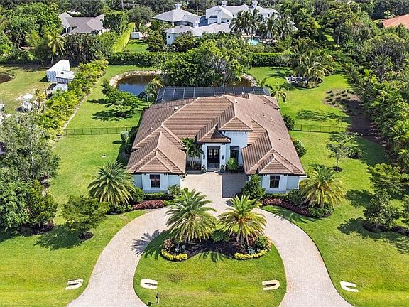 179 Mahogany Dr., a magnificent residence located in the prestigious Pine Ridge Estates. Situated on a 1.51-acre fenced lot. No expense has been spared in creating a luxurious atmosphere, with top-of-the-line features and finishes throughout. The gourmet kitchen is a culinary enthusiast's dream, equipped with Jenn Air appliances, an expanded island, and plenty of cabinet space. The interior design of this home is wonderful, with custom ceilings, crown molding, and attention to detail evident in every room. The master bedroom is a sanctuary of tranquility, featuring spacious walk-in closets and a large master bathroom. For those who appreciate a work-from-home environment, the study is equipped with built-in wall cabinetry and an adjacent wet bar, creating a functional and stylish workspace. The outdoor amenities of this home are equally impressive, allowing for a seamless transition from indoor to outdoor living. The covered lanai provides a shaded retreat, while the outdoor kitchen with grill and bar invites you to entertain in style. The heated salt pool and spa provide a refreshing escape, while the gas-raised fire feature adds a touch of ambiance.