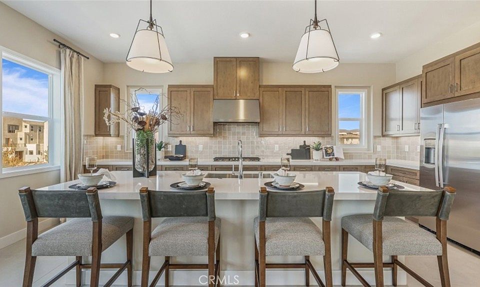 Comprised a spacious and inviting open-concept layout with convenient access to a covered deck for seamless entertaining. The three primary bedrooms are tucked away near the front of the home, including the luxe owner’s suite with direct access to a spa-inspired bathroom and walk-in closet. A two-bay garage on the first level completes the home.