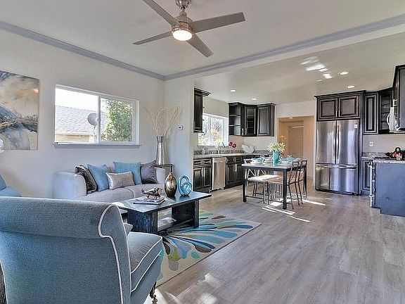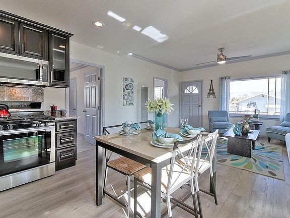 This house is an absolute 10 !!! Totally remodeled. Feels like a brand new home. New tile, carpet and laminate floors though out the house. Spacious kitchen with new appliances, new granite counter tops, new cabinets and new fixtures. Both Bathrooms completely redone with new fixtures counter tops and lighting. Inside washer and dryer. Detached garage has been converted to two rooms. Let your imagination soar with possible uses. The neighborhood is quiet with very nice neighbors. Close to shopping and transportation. New Bart route coming soon.