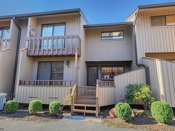 Excellent opportunity to own a spacious, sun filled unit with 2 car garage and beautiful views. Main floor has an eat in kitchen with granite counters, formal dining room, a spacious living room with fireplace and soaring ceilings, plus a den. The den was originally a bedroom and the bar area can easily be converted back to a closet. Each 2nd floor bedroom has its own full bath. Lower level great for exercise room or additional storage. Enjoy the large deck overlooking the glistening Rockaway river. Great location close to park, shops, restaurants and Kings grocery store. Central A/C 6 years old, Roof 5 years old, freshly painted exterior. A wonderful place to live!