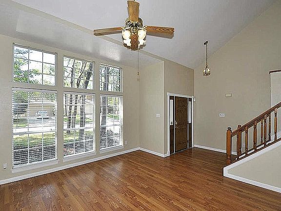 October 2021 renovated home in central location in The Woodlands backing to wooded green area with NO back neighbors! Convenient access to Hughes Landing, Market Street, & the Waterway. Wood laminate floors throughout main level living areas. Foyer with high ceiling. Vaulted Living room with floor-to-ceiling brick fireplace and wall of windows. Formal Dining room. Rear Den is open to Kitchen and Eating area with wooded views. Recent Kitchen renovation includes new (2021) quartz countertops, backsplash, sink, faucet, stainless appliances (dishwasher 2019 and others 2014) and is adjacent to large Eating area. Master has high ceilings and en-suite bathroom with new quartz countertops, dual sinks, faucets (2021) soaking tub, and separate shower. Two additional bedrooms and bath (also new counters/sinks/faucet). Large concrete patio and wooded yard. So secluded. Newer furnace 2018 and A/C 2014, water heater 2021, interior walls/trim painted 2021, roof 2008. See our on-line walk-thru video!