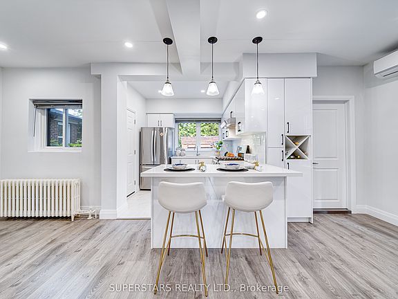 Welcome to custom-renovated (2021) detached home on Oakwood Ave. Bright living room with natural light from windows. Open-concept dining room, modern kitchen with quartz countertops, ceramic backsplash, pot lights, and laminate flooring throughout. Cozy bedrooms designed for comfort and rest. Bonus loft space ideal for a home office, study, or play area. Double garage plus driveway parking for up to 6 cars. This home offers separate entrance to a 2-bedroom basement apartment, perfect for rental income. Minutes from Casa Loma, Upper Canada College, supermarkets, shops and restaurants.