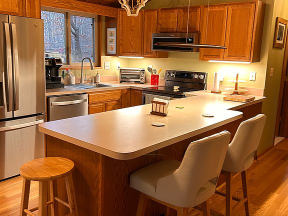 Cottage style property located in the Woods community. Recently renovated bathroom, new kitchen appliances, and new hardwood floors. The property is on a very quiet street with few neighbors, and a 1 acre lot. It is surrounded by trees, has an established garden, patio with outdoor table and fire pit which creates the perfect place to relax after a busy day.