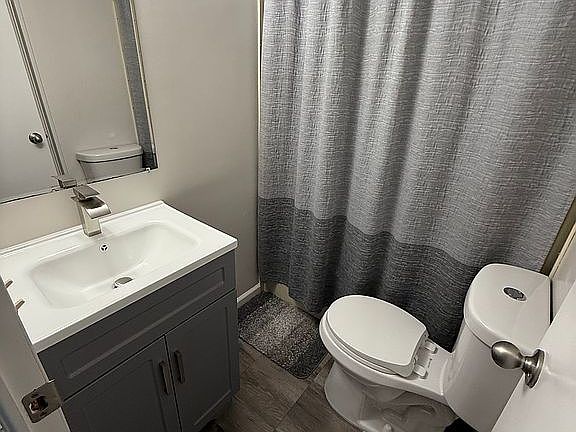 This property features a recently remodeled bathroom, two bedrooms, and one bathroom, encompassing 608 square feet. It includes a private patio, designated parking, a small grassy area, and a shed.