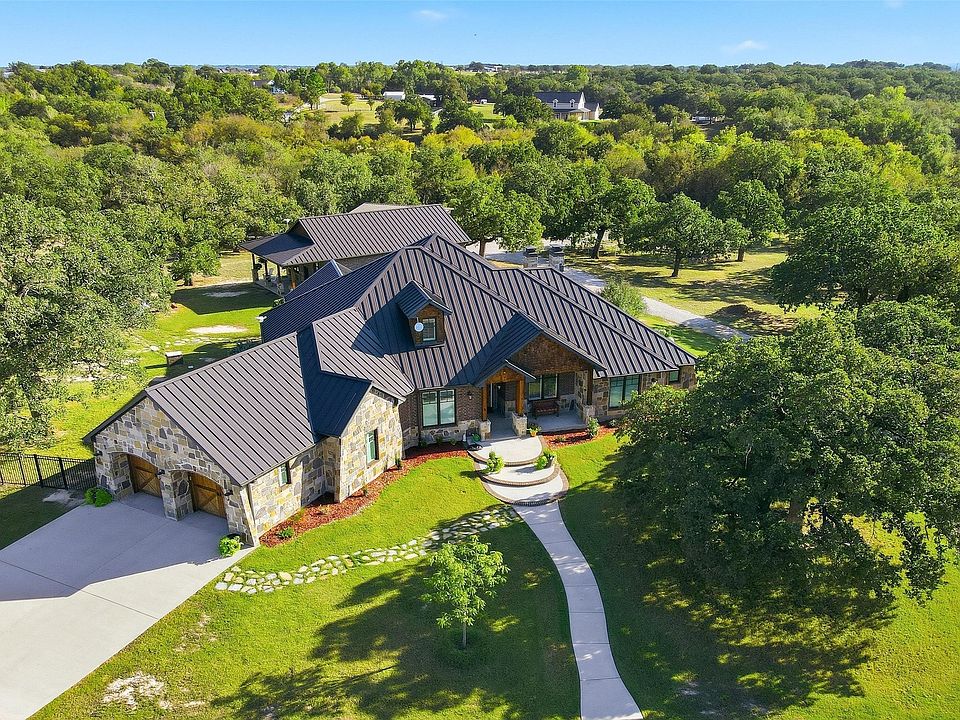 Experience luxury, country living at its finest in this custom-built home on 10.1 picturesque acres. The main house offers 3,034 sq. ft. of living space while the guest house adds 1,260 sq. ft., for a combined 4,294 sq. ft. Thoughtfully designed and built in 2016, this property offers beauty, functionality, and craftsmanship at every turn. The land is ag exempt, fenced and cross-fenced with a lean-to for livestock, complete with scenic trails, a dry creek bed, and a waterfall that flows during wetter seasons, creating a truly serene backdrop.