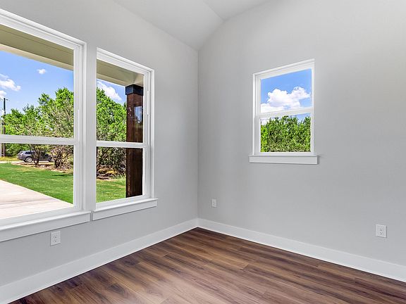 Experience refined Hill Country living with The Blue Lacy, a spacious 2,215 sq ft home thoughtfully crafted for comfort and elegance. This 4-bedroom, 2.5-bathroom residence seamlessly blends modern design with timeless charm, nestled within the serene landscapes of Ridge Point Estates. Step into an inviting open-concept layout where the living, dining, and kitchen areas flow effortlessly, creating an ideal space for both daily living and entertaining. The kitchen is a culinary masterpiece, featuring waterfall quartz countertops, a central island, and ample cabinetry, all designed to inspire your inner chef. The private owner’s suite offers a tranquil retreat, complete with a luxurious ensuite bathroom, dual vanities, a walk-in shower, and a spacious walk-in closet. Three additional bedrooms provide versatility for family, guests, or a home office. Outdoor living is enhanced by a covered patio, perfect for enjoying the peaceful surroundings of your charming Burnet home. The 2-car garage offers ample space for vehicles and storage needs.