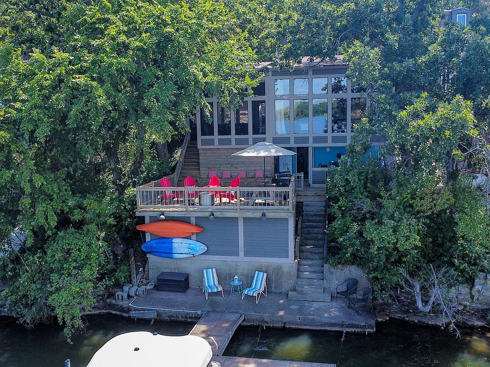 Your lake retreat awaits at Lake Kahola in the beautiful Flint Hills! This updated lake home offers large floor to ceiling windows with panoramic views of the lake, cows grazing in the rolling hills, and sunrises/sunsets. Designed for relaxation and recreation, this property has the potential to be enjoyed year round. The updated interior has an open concept living/kitchen room, screened porch, bathroom, partitioned loft and alcove (can sleep 6 to 8 people) Step outside to your large deck one level down, and your newer Mac Dock and boat lift on the water, which can accommodate a fishing boat, ski/wake boat or pontoon boat. 18 ft water depth at dock. Enjoy excellent fishing, swimming and endless water activities. Lake Kahola is zebra mussel free and has an active social committee, July 4th fireworks and more! Property includes large container storage behind the house. Plenty of room for future expansion, if desired. Schedule a tour today!