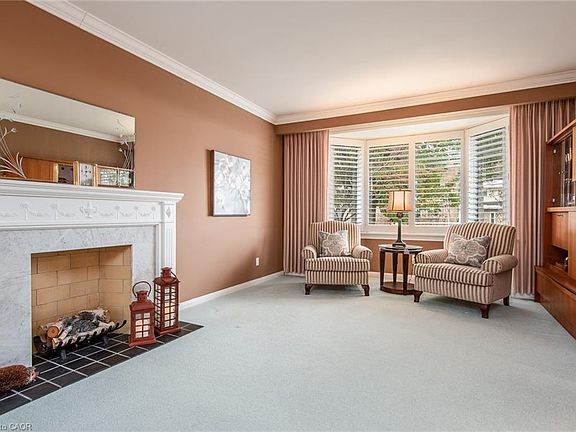 Welcome to this exceptionally well cared for 2-storey home in the great Kitchener neighbourhood of Stanley Park, offering plenty of space and comfort for the whole family. Boasting over 3,500 square feet of finished living space, this home seamlessly blends numerous tasteful updates over the years with timeless charm. Outside you’ll be greeted by a double car garage and an exposed aggregate driveway (2022). Inside, the main floor features a welcoming entry way, a sunken living room with a cozy electric fireplace and lots of natural light courtesy of the front window, and a large formal dining room perfect for family gatherings. The bright and spacious eat-in kitchen offers granite counters and lots of cupboard space, along with a stylish brick feature wall, bay window with a built-in bench and an eating area. You’ll also find a convenient main floor laundry room with backyard access, 2-piece bathroom (2019), a den or home office and a warm family room complete with a wood-burning fireplace and patio doors leading to the backyard. Upstairs, the large primary bedroom includes a private three-piece ensuite (2019) and patio doors opening to a private composite deck—ideal for morning coffee or evening relaxation. Three additional generous-sized bedrooms, a four-piece bath (2019), and a separate cedar closet complete this upper level that screams family friendly. The finished lower level offers excellent versatility with a large recreation room, a games area (or fifth bedroom), a craft room, and plenty of storage space. A walk-up provides direct access to the double car garage. The backyard features a stone patio, large mature trees and no rear neighbours. This home blends comfort, functionality, charm and a fantastic location —perfect for growing families or those who love to entertain.