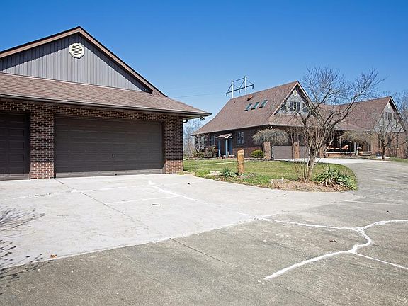 Discover this 3–4-bedroom home on 6+ acres close to town. This thoughtfully designed home and floorplan is not to be missed. Features include the Great Room w/vaulted ceilings and fossil stone gas fireplace, kitchen with plenty of cabinet space & large island w/seating, sunroom or breakfast nook overlooking the backyard, dining area, 2 bedrooms on the main floor with full bathrooms, lg. laundry room, primary suite on the 2nd floor that extends the width of the home and includes a full bath and private deck, also a separate stairs will lead to an office with built-in shelves, full bath that could be used as a 4th bedroom, and a sunporch that leads to the patio and the gazebo that offers a private oasis. Additional living space in the walk-out basement includes a family room w/ fireplace, wet bar, dining area, full bath and storage. The home also includes an attached 2-car garage, and a 33 x 53 sq. ft. detached 2 1/2 car garage with a workshop. This property is a rare find, Call Today!