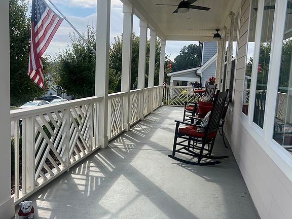 This enchanting home at 179 Steepleview Drive is the Viburnum model. The residence features custom cabinetry and millwork, a large front porch for chilling and/or engaging with neighbors, and beautiful hardwood floors throughout. Step inside from the front porch and you are welcomed into an open & inviting living area with abundant natural lighting. It features a gas/wood fireplace flanked by custom case openings that flow seamlessly into the sunroom. The kitchen includes quartz countertops, a large wooden island, and high-end appliances. The main floor is anchored by the spacious owner's suite, offering ample space, a walk-in closet, frameless glass shower, and custom tile package for added luxury. Upstairs, a loft-like landing leads to spacious bedrooms and a second full bathroom with glass shower place. The upstairs front bedroom & landing areas offer beautiful views of the surrounding hillsides evoking feelings of living in the northern Georgia mountains. The back hall of the home leads to a double door pantry, powder room, laundry, and mud area providing access to the backyard patio and a walkway to the two-car garage. The patio area offers ample room for entertaining outside as well as a nice, relaxing fire pit area - both nestled in front of the beautiful & unique natural granite wall along the rear of the property. The Glenview community is a relaxed, refined new neighborhood on the edge of Five Points in Athens, GA, offering already customized homes, expertly designed for modern living, featuring stunning artisan details and amenities unmatched in the area. Homes are a mix of contemporary cottages with floor plans designed for modern living. Each includes custom-milled wood features, high-end appliances, and finishes. Neighborhood amenities include a 4300 square foot Clubhouse with two gyms, kitchen, game rooms and gathering spaces, plus a pool and dog park. Your HOA provides trash service, hi-speed wireless internet, lawn service and landscape maintenance.