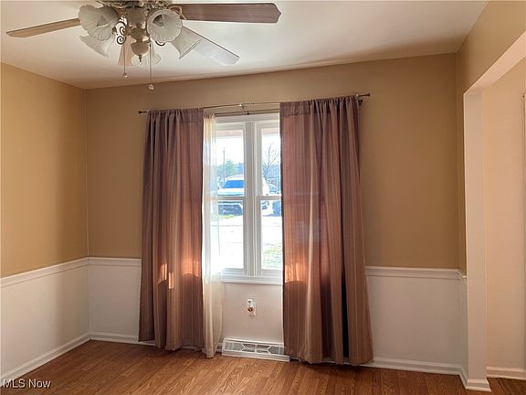 - Description: Formal Dining room w/chair rail & laminate floor,Flooring: Laminate