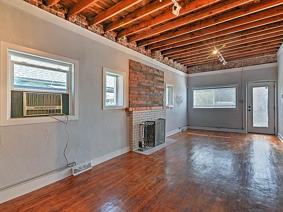 The Interior: The home has 3 bedrooms, 2 on the main floor (both with ceiling fans) and one in the garden level basement as well as 2 bathrooms (1 upstairs, 1 downstairs), good size closets in each room. This historic gem has hardwoods throughout the main floor, exposed rough-hewn ceiling beams, exposed brick walls and a working wood burning fireplace, a fully updated kitchen with new cabinets, butcher block counters and stainless appliances (dishwasher, gas range, Microwave, GE fridge). Both baths are updated (new tubs/toilets, sinks, etc...). Large dining/living room with working wood-burning fireplace, swamp cooler for hot summer days and countertop seating extending into the kitchen. Washer/dryer in unit located off the kitchen. Home has new sewer line, new windows, new carpet, refurbished flooring and new electric all done in the last couple years.