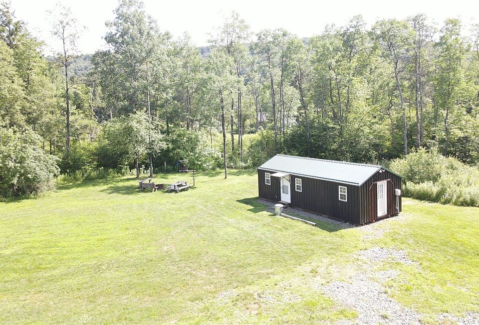 This camp/retreat has the Walcott Brook running through this 3.31 acres of land. Spend your days simply relaxing by the stream soaking in the beauty of your private retreat. This is more than just a camp, it's a gateway to a lifetime of unforgettable cherished memories to hold from family time, hunting and recreation. This has electric heat plus a mini split to include the central air. Surveyed. Underground electric cable to the camp with 100 amp. service. All light are LED and dimmer switches. All lights switch plates are metal and have different features on each one. The bathroom fan is programable to set to run anytime to circular air in the camp. The well pump is in the heated insulated adjoining room. Public sewer. Many apple trees to bring in the wildlife. Level lawn. Driveway has heavy matting under stone. Across the perimeter under the camp has geo-grid matting. Both #3 then #2 stone, to hold 2000 lbs per sq. ft. Perfect for an Airbnb. Very well-built building. Secluded. Building is 14' x 32'