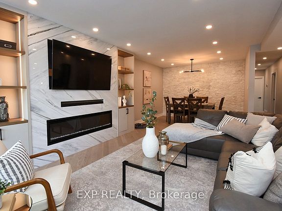 179 Willowridge Rd perfectly blends modern style with suburban comfort. This fully renovated 3+1 bedroom, 2-bathroom home features a finished basement with a separate entrance and full kitchen, ideal for rental income, in-laws, or guests. Over $150,000 in upgrades make it move-in ready. The open-concept main floor is bright and inviting, with a custom kitchen featuring a large quartz island, matching backsplash, French door fridge (2023) with water/ice, stove (2023), dishwasher, washer/dryer (2023), water filter, and Calacatta tile floors. Engineered red oak hardwood flows throughout, complemented by new bedroom doors and fresh paint inside (2025) and out (2024). The living area is highlighted by a new stone granite fireplace (2024), pot lights (2021), and upgraded copper wiring (2021). Key updates include roof (2023), furnace (owned), A/C (2024, owned), water tank (2024, owned), dehumidifier (owned), fence (2022), concrete (2023), sidewalk (2022), balcony and stair railings (2023), and a renovated bathroom (2021).The west-facing backyard offers space for BBQs, gatherings, or relaxing evenings. Situated on a quiet, family-friendly street, the home provides easy access to downtown Toronto, Pearson Airport, Hwys 401/427, and the future Eglinton LRT at Martin Grove, while nearby Willowridge Park, shops, schools, and dining complete the picture of convenient, stylish living.