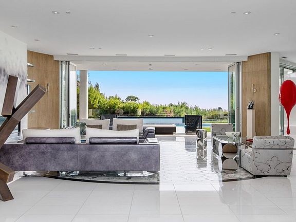 Situated on a prime city view rim lot in prestigious Trousdale Estates rests this distinguished, newly remodeled mid-century contemporary estate with breathtaking vistas from downtown to the Pacific. Behind the private gates, be greeted by a meticulously landscaped motor court complimented by large fire features and hedged private driveway for a grand welcome to the 4 bed, 6 full baths, 2 half baths, 6,472 square foot abode. The oversized living spaces are bathed in natural light, with walls of windows opening to expansive manicured gardens with incredible jetliner views. This home offers the ultimate indoor/outdoor living. Luxurious amenities include a theater, chefs kitchen, office, wine cellar, wet bar, and the finest finishes throughout. The master is embellished with floor to ceiling windows, vast walk-in his and her closets, and spa-like bathrooms. Retreat to the resort-style backyard entertainment oasis with patio, lounge area, fire pit, outdoor bbq area & pool and spa. An artful lifestyle experience meticulously curated with iconic Beverly Hills sophistication.
