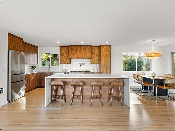 Incredible value in West Linn! The premium location, top schools, mountain views, huge lot, and modern upgrades make this home a cannot-miss opportunity. The mid-century modern design and high-end finishes create a luxurious experience throughout the home. Enjoy the best that West Linn and Lake Oswego have to offer, with quick access to Hwy 43 and some of the best restaurants in the entire metro area. Wake up every morning to gorgeous views, including two mountains. The huge yard offers a fantastic opportunity to enjoy the outdoors with plenty of space to park an RV, boat, and more. Extremely low-maintenance with a newer roof, plumbing, furnace, windows, driveway, and brand-new AC unit. The huge bonus room on the lower level is perfect for a home gym, second living room, playroom, office, or more. The brand-new kitchen offers some of the finest finishes with custom cabinetry, a pot filler, new appliances, new hardwood floors, a new sink, and a double waterfall quartz countertop. The bathroom is thoughtfully upgraded with the finest Terrazzo flooring. Take advantage of the opportunity to enjoy a luxury West Linn lifestyle at an incredible value!