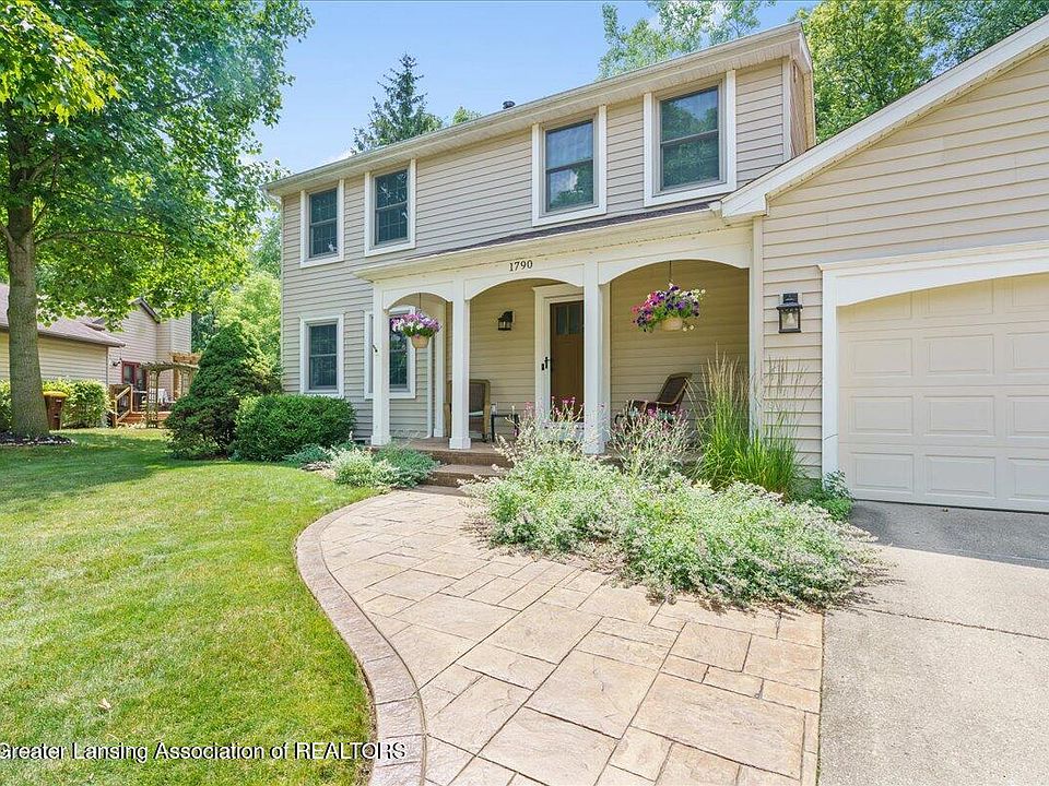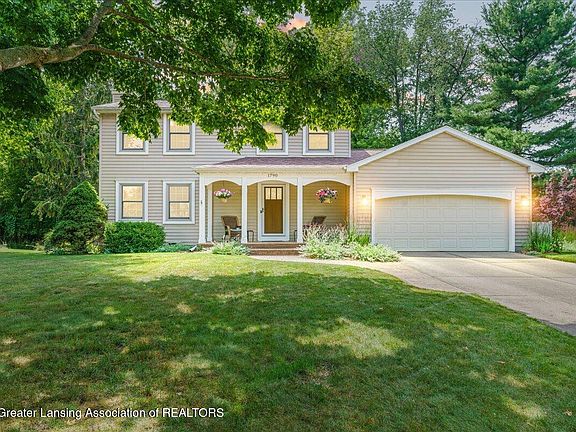 Searching for the perfect home in Haslett that is move-in ready? Here it is! This Schroeder-built, one owner home has been meticulously taken care of. Located across the beautiful Lake Lansing on a cul-de-sac and close proximity to grocery stores & highway, it's a must-see home. As you walk up to the home, you'll notice the front facade has been renovated. From the trims around the windows to the impressive stamped concrete walkway that leads you into the home, you'll want to see more of the home. Step into the foyer with white oak floors that run through the kitchen and the Great Room. To the left is the Living Room with a wood burning fireplace and head to the right and you'll find the updated kitchen with Quartz countertop, Granite composite sink, and Bosch & Whirlpool appliances Enter into the addition of the home comprising of the Great