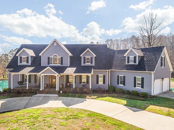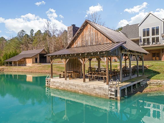 Absolutely stunning 4 or 5 bedroom, 4 full bath home over a partially finished daylight basement, picturesquely situated on 6 +/- private acres with your own stocked pond, outdoor pavilion and barn. If you are looking for plenty of room to spread out or entertain both indoors and out, then you need to come see this beautiful property in Cleveland. The home boasts quality finishes throughout with lovely hardwoods and tile, crown molding, convenient built-ins, great storage space, the master on the main, 2 laundry facilities, great outdoor living areas and room for expansion if desired. The main level boasts a covered front porch that leads to the 2 story foyer with sweeping staircase and enlarged doorway to the formal dining room. The soaring great room has a wall of windows overlooking More...the rear deck with scenic views of the water beyond. The kitchen is open to both the keeping room and the breakfast room and has a center island with pendant lighting, granite countertops, stainless appliances, custom cabinetry with pull-out drawers, built-in desk and is close to the garage for easy loading and unloading. The master suite has French doors to a rear covered patio, a walk-in closet with organizer system and master bath with dual granite vanity, private water closet, jetted tub, open tiled shower and shared access to the laundry room. Another room with private bath and built-in armoir is currently being used as an office but could easily be a guest bedroom or nursery. The upper level has a nice landing area that overlooks the foyer and the great room, providing additional architectural interest and leads to one bedroom with a private bath, another bedroom with a shared bath, a sitting area with access to the secondary staircase, and a bonus room or huge bedroom at the end of the hall. The lower level has a central family room that is open to a dining area and 2nd kitchen and has French doors to a covered patio area. To the right, 2 rooms have been framed to support a Jack and Jill bath if someone would like to finish out the space in this manner, or they provide fantastic storage. Down the hall to the left, there is a partially finished bath/laundry room, another expansion room, a storage room and a workshop/garage area. The barn is just steps away, and the seller is currently using the space as a cross fit gym, but horse lovers are welcome too! The covered pavilion is perched on the water and has custom built picnic tables, a stacked stone fireplace and ladders for the swimmers in the household. A level field to the left of the house provides a great space for fun and games before heading for the water to cool off. This property has so much to offer the buyer fortunate enough to make it their own, so please call for more information and to schedule your private showing today.