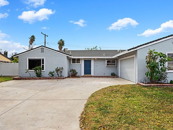 Wrap this up and put a bow on it. Just in time for Christmas! Welcome to this newly painted, inside and out single story home, with beautiful engineered hardwood flooring throughout. Custom kitchen with pull out drawers, granite countertop and tile backsplash. A nice flow with 3 bedrooms including an ensuite master, 2 1/2 baths, living room, dining room, family room with fireplace and a formal dining area...and to top it off, finished laundry area. Did I mention new dual pane windows, crown molding, copper plumbing, newer Lennox heating and air conditioner with Lennox Thermostat plus ceiling fans in almost every room. Part of the garage was converted into a room to use as you like, maybe an office, area for the kids to play, craft room, storage or possibly a mancave. The huge backyard gives you endless possibilities to design to your liking. RV parking! No need to belong to a country club when you can enjoy the amenities of the Rancho Simi Community Park just across the street inclusive of the park, playground, serene pond, community pool and Pickleball/Sports Courts. Close to school and shopping. Call the moving company honey, because I just found Home!