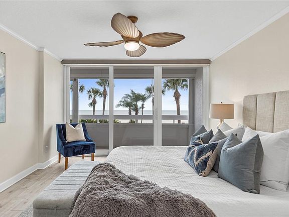 NO STAIRS, NO ELEVATOR, NO COMPROMISE. FULLY RENOVATED BEACHFRONT PARADISE IN REDDINGTON SHORES Discover the perfect blend of convenience and coastal elegance in this exceptional main entrance level residence at prestigious Redington Towers, where luxury living meets effortless accessibility. Imagine never waiting for an elevator or climbing a single stair to reach your slice of paradise. This fully renovated and updated two-bedroom, two-bath sanctuary offers the rare luxury of main-level living (1st floor above the parking garage and the same level as the main parking deck) with immediate access from the elegant lobby, making it ideal whether this becomes your everyday retreat or the perfect escape for weekend getaways and extended vacations. From your private sunset-gazing position, embrace the best of both worlds with sweeping water views of the sparkling Gulf of Mexico. Start your mornings watching the sun dance along the sparkling blue Gulf waters and then end your evenings as the sun melts into the Gulf, all from the comfort of your two private balconies. Every detail has been carefully considered in this complete renovation, featuring custom window coverings throughout and a chef's kitchen with granite countertops, premium stainless steel appliances including a slide-in range, abundant storage with a large pantry, and a convenient breakfast bar. The primary suite sanctuary boasts private balcony access, an updated ensuite bath with marble counters and custom glazed vanities, and generous walk-in closet space, while the flexible second bedroom also offers a walk-in closet, updated bath with marble counters and custom glazed vanities, and board-approved space for in-unit washer/dryer installation. Enjoy peace of mind with impact-rated sliding doors, and one assigned parking space. Redington Towers transforms daily life into a vacation experience with 24/7 gated security for ultimate peace of mind, private beach access via secure walkway with no crowded public beaches, a heated resort-style pool with changing facilities, EV charging stations, and generous storage for bikes, kayaks, and paddleboards. This unit offers an additional storage area plus the ability to create an in-unit laundry. The community center is getting a full refresh and will feature a state-of-the-art fitness facility, social rooms, and a beachside clubhouse. Step outside your door to discover Boca Ciega Millennium Park for nature trails and kayaking adventures, local dining and shopping within minutes, easy trolley access to Treasure Island, John's Pass Village, and Clearwater Beach, with Tampa International Airport just 45 minutes away. Whether you're planning frequent visits to your coastal retreat or making this your year-round residence, the main entrance level location offers unmatched convenience with effortless access for guests of all ages, easy move-ins and deliveries, quick exits for beach days and adventures, and makes it perfect for full-time or part-time living. This is more than a condominium—it's your personal gateway to the Gulf Coast's most coveted lifestyle, where every day feels like a vacation and coming home is always effortless. Schedule your private showing today and step into coastal luxury redefined.