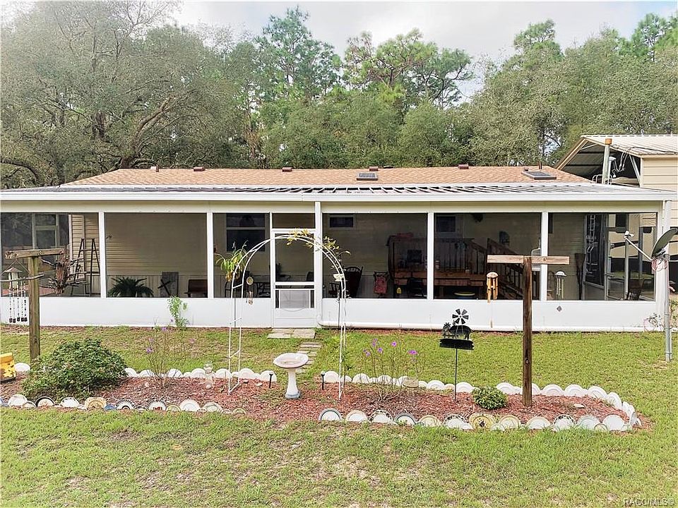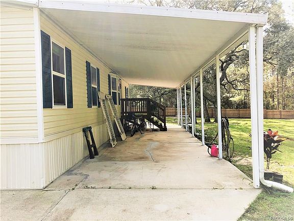 Come Home To Your Private, Secure And Serene, RV PORTED, (50 & 30 Amp, Septic Port), Personal 1 Family Campsite & Park! 1.02 Acre, 1927 Total Sq/Ft 1104 Living SQ/Ft Manufactured Home Anchored Down On 1184 Sq/Ft of Poured Concrete Foundation Personal Campsite & Park with Above Ground Pool, Brick Paver Campfire Pit and Shaded Picnic Area 898 L/FT OF Tall Privacy Fence. Cleared and grassed in yard lined with Majestic Views under the Mighty Oaks & Pines. Drive-in Large Garden Shed /Workshop on Concrete Slab & Ramp. Drive Under Enclosed Carport Right up to Front Door. Enjoy Sipping a Sunrise Cup of Coffee on your Enclosed 11 x 45 FT Screened Patio While Surveying Your Secluded Kingdom. Expansive Backyard Has Plenty Of Room For Multiple Gardens. Come See It Whole House New Double Pane "Tilt To Clean Windows & Skylights". Home is Awfully Nice Too!