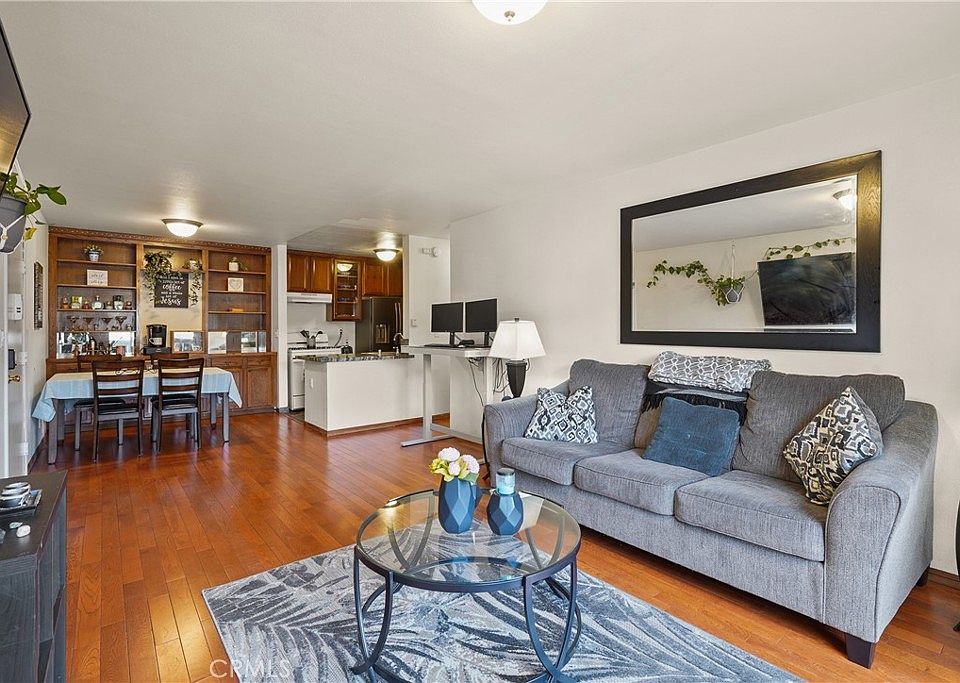 Nestled in the heart of Reseda, this exquisite condo presents a luminous 1-bedroom, 1-bathroom sanctuary with an inviting open floor design. The spacious living and dining area boasts a built-in wall unit abundant in cupboard space, complemented by elegant laminate flooring and a generous private balcony. The sizable bedroom features a walk-in closet alongside an additional storage unit. The expansive kitchen is adorned with oak cabinetry, sleek granite countertops, and includes a convenient dishwasher. Within the community, residents enjoy access to a well-appointed gym, a recreational room, and a delightful pool area, making for a truly enjoyable living experience.