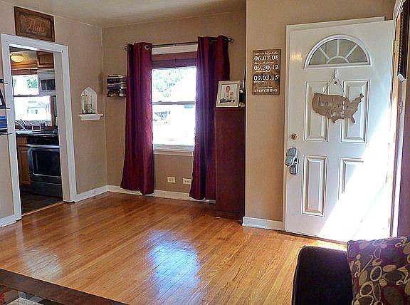 Great home near school (1 block away), parks, shopping, entertainment, nightlife, and near downtown and summer outdoor fest location. Easy access to I-294, I-94, and I-80. This home features hardwood floors, cozy fireplace, newer flooring in updated kitchen, new double pane, double hung windows, vinyl siding, remodeled bathroom, and a GREAT partially finished basement. Huge fenced in yard perfect for entertaining.