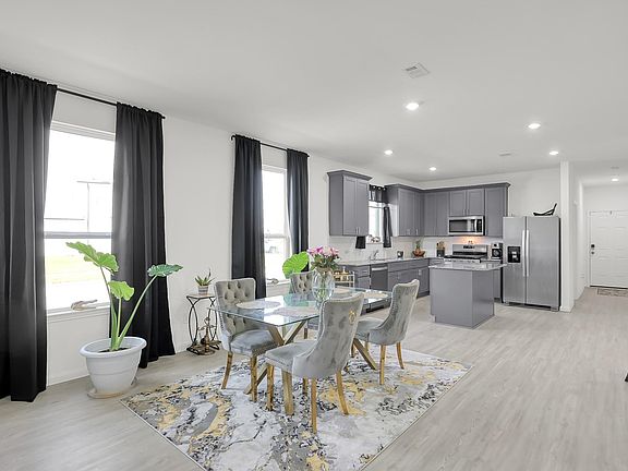 Welcome home to the Hewitt, a thoughtfully designed 4-bedroom, single-story plan by Centex. This one sits on a corner lot with no back neighbors and offers a HUGE backyard! The fourth bedroom sits at the front of the home, highlighted by a large window with views of the outdoors. At the heart of the home, an oversized family room seamlessly connects to the dining area and island kitchen—perfect for gatherings and everyday living. The kitchen is a chef’s delight, featuring granite countertops, 42” cabinetry with satin nickel hardware, a deep under-mount stainless steel sink, and an upgraded Whirlpool stainless steel appliance package. Cook with ease on the 5-burner gas range with convection and built-in air fryer mode! Retreat to the private owner’s suite with its spacious walk-in closet, dual vanities, and an oversized shower with ceramic tile surrounds. Throughout the home, luxury vinyl plank flooring adds a modern touch, with plush carpet reserved for the bedrooms.