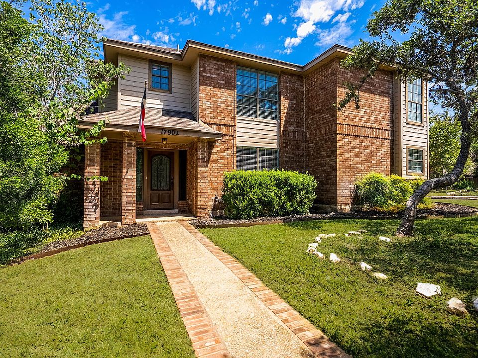 NEW RENTAL ALERT READY NOW Tucked beneath the shade of mature oak trees on a spacious corner lot in the heart of Stone Oak, this gorgeous four bedroom three and a half bath home is the kind of place that makes life feel easy. The moment you pull up, you can feel the difference. The curb appeal is classic and welcoming. The lot is over a quarter of an acre and the oak trees seem to wrap the home in comfort and privacy. Step inside and you are immediately greeted by soaring two-story ceilings, a wall of windows bathing the living space in natural light, and a cozy brick fireplace that feels made for relaxed evenings or holiday gatherings. The open living room flows seamlessly to a wine bar and out to the large wood deck patio, making this a home that knows how to host. Imagine Saturday nights with friends and a bottle of wine, or quiet mornings with coffee and a gentle breeze. The kitchen is a dream for home cooks or anyone who loves a well-planned space. Granite countertops, a large island, a smooth cooktop, and double ovens give you the tools you need whether you are meal-prepping for the week or pulling together a Thanksgiving dinner. The formal dining area offers elegance for special occasions while tile floors throughout the main level make for easy cleaning and effortless flow. Downstairs, the private primary suite is a true retreat. With peaceful backyard views, the bedroom offers the serenity you need at the end of the day. The en suite bathroom features two separate granite vanities, an upgraded walk-in tile shower, and a large walk-in closet that makes mornings feel organized and calm. Upstairs, one of the secondary bedrooms includes a private bath, ideal for guests or older children. The remaining bedrooms are generously sized and share a well-appointed bathroom, making this layout perfect for families or roommates. Beyond the walls, the backyard invites imagination. The expansive deck is perfect for barbecues and dinner parties, and the pool-sized yard gives you room to dream big whether it is a garden, a trampoline, or the future pool of your choice. Additional perks include two recently replaced AC units for efficient cooling, a water softener for daily comfort, and walking distance to Reagan High School, one of the most sought-after schools in the area. This home offers the kind of space, light, and charm that simply feels like home from the moment you walk in. Schedule your tour and see why this Stone Oak stunner is more than just a rental. It is a place to thrive. By submitting your information on this page you consent to being contacted by the Property Manager and RentEngine via SMS, phone, or email.