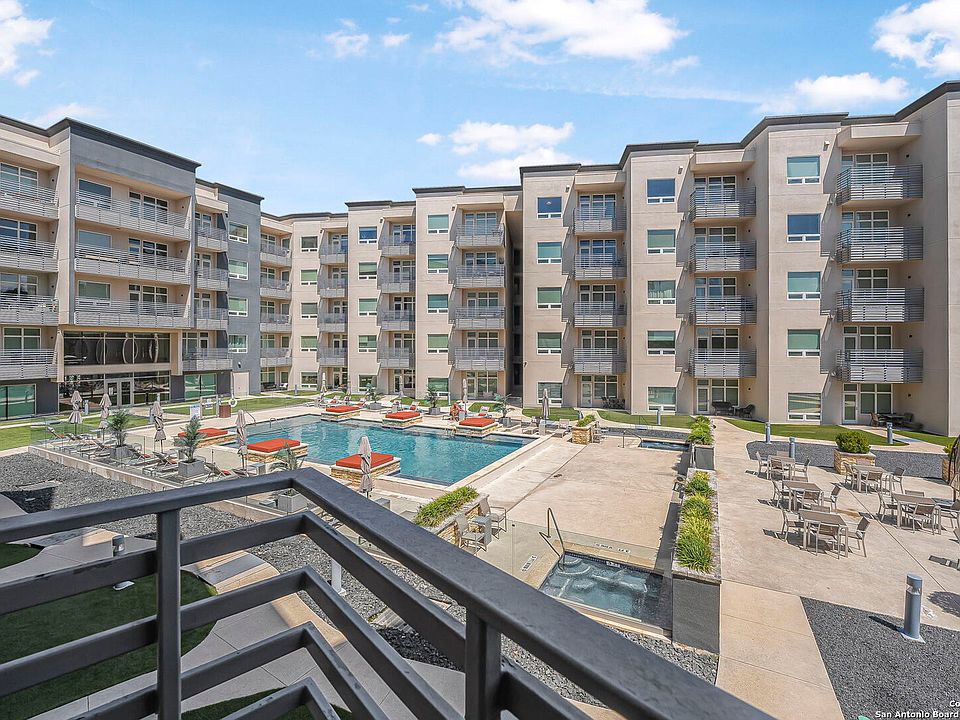 Attached is the Luxury Living with Pool Views and Your Own Private Garage! Experience elevated living at The Ricchi Luxury Condominiums, where upscale living meets unbeatable convenience in the heart of the La Cantera/Rim area. This stunning second-floor unit features a bright, open-concept layout with high-end finishes throughout. The modern kitchen is equipped with quartz countertops, custom cabinetry, and sleek stainless steel appliances. Step out onto your private balcony overlooking the sparkling pool, an ideal spot to enjoy peaceful mornings or unwind in the evenings. This unit includes a private detached garage along with an additional covered parking space. Enjoy a full suite of resort-style amenities, including a beautiful pool, fitness center, clubhouse, and controlled-access entry for peace of mind. Perfectly located just steps from The Shops at La Cantera, top-rated restaurants, and premier entertainment. You're only minutes from UTSA, Six Flags Fiesta Texas, and The Rim, with quick access to Loop 1604 and I-10. Outdoor enthusiasts will love the walking and jogging trails right behind the community, and Lifetime Fitness is just around the corner. The HOA covers water, high-speed internet, and on-site maintenance, giving you more time to enjoy the things you love. Discover the perfect blend of luxury, location, and lifestyle at The Ricchi Luxury Condominiums.