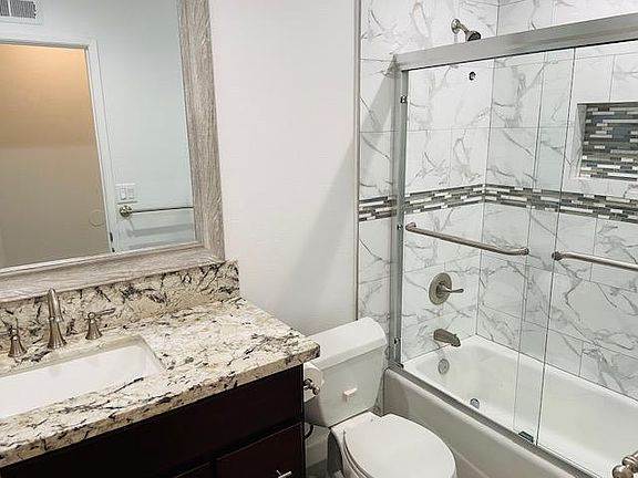 Newly remodeled 3 bedroom, 2 bathroom Cerritos home. Situated in a quiet cul-de-sac east of Hwy 91, this home is within the blue-ribbon ABC School District (Cerritos Elem/Carmenita Middle/Cerritos High). The home boasts new wood/carpet floors, a fully renovated kitchen with granite counters, stainless steel appliances, recessed lighting and espresso wood cabinets. Both bathrooms feature beautifully tiled shower/bath/floors with granite vanities. There is also a fully enclosed sun room, which is perfect for California indoor/outdoor living, as well as a two car garage. The backyard features mature fruit trees. Other upgrades include a new AC/HVAC system. This home is a must see! All showings/viewing opportunities will be held during weekend open houses on 7/24 + 7/25 from 2-4pm (no private showings). Please note that washer and dryer are NOT included (W/D hook-ups are in the garage); and also note that garage is attached (not detached). Renters to pay for all utilities, including landscaping/gardening; no smoking, no pets