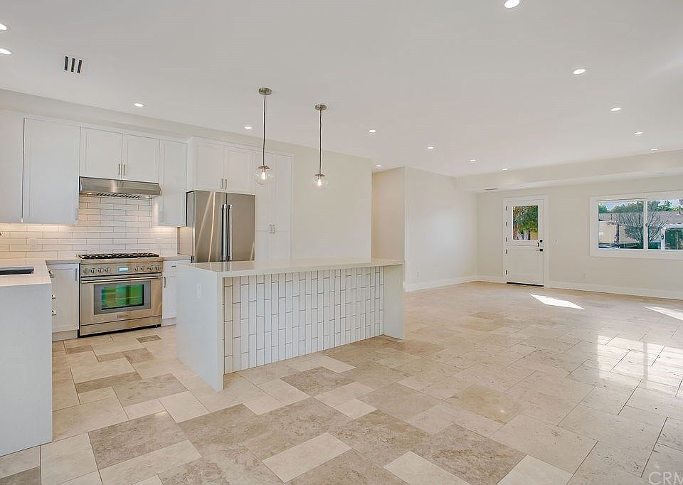 Renovations worth over $350,000! Feels like a new construction! Every aspect of this single-story home has been painstakingly crafted to deliver modern luxury. Enter through a charming 7' tall, solid-wood Dutch Door & discover an airy, light, and open floorplan with 9-foot ceilings throughout. The opulent living room boasts a clear view of the inviting dining room and the gourmet kitchen. This kitchen is a chef's delight with a huge quartz island and top-of-the-line appliances, including a 36" Thermador 6-burner gas range, and Bosch dishwasher. Eight-foot tall double entry doors to the master suite lead you into arched ceilings with ambient lighting, and an enormous walk-in closet. The spa-like master bath is highlighted by the double shower encased in glass. Also indulge in a bubbling, reheating overflow tub. Other amenities include chic quartz slab counters on the dual-sink vanity and elegant tile walls. Down the hall you'll find another en-suite bedroom with jacuzzi tub & glass tile shower, large laundry room, bedroom, and a double shower bathroom. The private backyard has a coveted BBQ granite island with fridge. When you aren't breathing in the fresh beach air, you can breathe easy with the new HEPA filtered HVAC system. Every facet of the home was vetted for energy efficiency and water conservation with drought-tolerant landscape, high-end artificial turf, double-pane windows and sliders, recessed LED lighting, & tankless water heater. Act now; this will move fast!