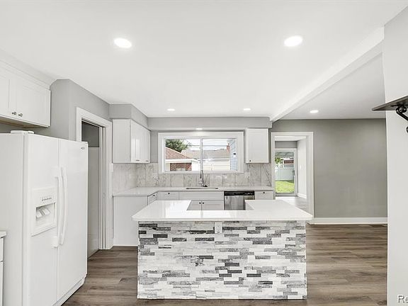 Stunning ranch homePrivate entranceIsland with an overhangEgress to the backyardBeautiful yardLed recessed lightsRear porch