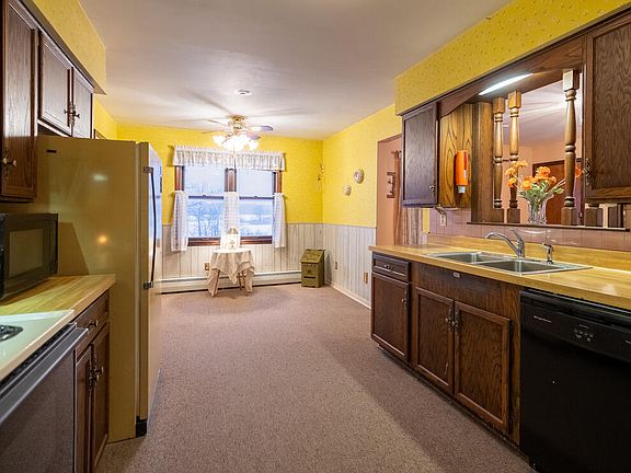 This ranch home is such a gem! 3 bedrooms, 1.5 baths, a spacious kitchen, a cozy den that connects to the covered porch that overlooks rolling hills and your beautiful back yard. The basement has ample storage, custom built-in shelving, partially finished living spaces, and a walkout to a patio! Enjoy the convenience of the attached 1.5 car garage, perfect for our Michigan winters. This home also has gorgeous hardwood floors throughout most of the main level that have been preserved by the current carpet. New well installed December 2025. Minutes from great