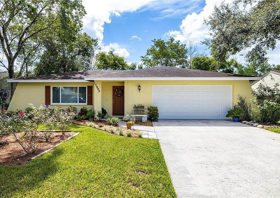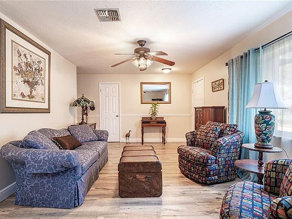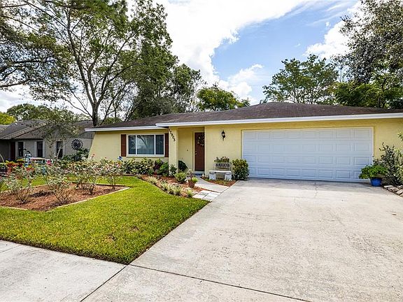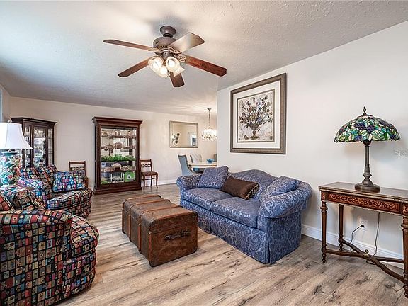 Pristine 3 bedroom, 2 bath, 2 car garage home is situated on a lovely manicured lot. This home features a formal living & dining room along with a cozy family room with volume ceilings that leads to a screened lanai. Kitchen has been updated with solid wood cabinetry, granite countertops & stainless steel appliances. Newer laminate flooring is throughout the home with the exception of the baths which have tile flooring along with granite counters. Master bedroom is spacious with lots of natural light & a nice sized walk in closet. Large backyard has vinyl fencing & has a 2 years new shed (8x12) complete with electric, perfect for a workshop, office or a getaway He/She shed. Tons of storage throughout the home & garage. Excellent School district, no HOA or CDD fees. Buyer to verify room sizes. You will not be disappointed with this home!!