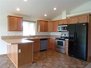 This almost new home (2010) is on 3/4 of an acre. Covered country porch, quiet, private area with rear fence. Plenty of room to build a shop, have a garden, RV parking, or for your animals. 2 car attached garage, open and spacious great-room plan with vaulted ceilings, blinds on all windows. Hurry, this home is priced to sell and great value for a newer home on 3/4 acre lot!