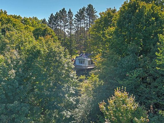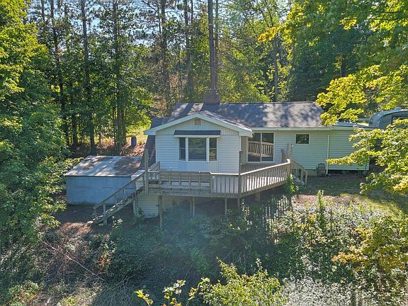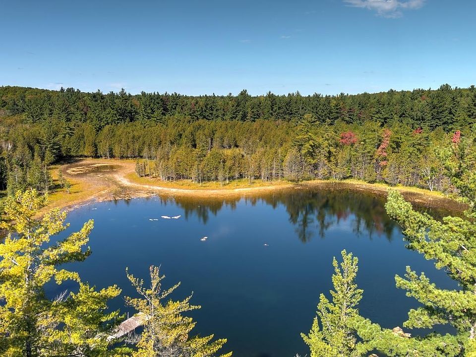 A wildlife & nature lover's TREASURE! Scenic 30 hardwooded ACRES & the WHOLE private BELL LK, backed by 430 acres of State Forest. Bell Lake in Inland TWP is about 5-7 acres, land is heavily wooded & rolling terrain, some open areas & beautiful marsh land around LK. Cozy 2 BR/1 BA home w/list of updates, brick wood-burning FP, decking, updated island kitchen; new appliances, flooring, newer mechanicals & roof. Generac Generator 2017. Lennox furnace 2018. Cement BLK garage was used as workshop, new roof 2020, elect not hooked up. Trails thru out. Older wood dock. Also a small rustic cabin. Subject to split approval.