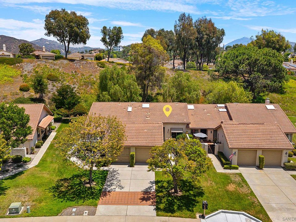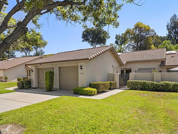 Surrounded by the serene setting of Oaks North Villas, this single-story residence offers an ideal blend of simplicity and sophistication. With recent upgrades throughout and private outdoor retreats, it’s designed for effortless living in a vibrant 55+ community. A freshly landscaped front patio sets a welcoming tone before stepping through the front door. Inside, soaring vaulted ceilings and all-new (2023) Anlin dual-pane windows and sliding doors fill the home with light, while updated fixtures and finishes (See supp) add a touch of modern elegance. The 2-bedroom, 2-bath floorplan offers both convenience and privacy, complemented by a private 1-car garage. The kitchen shines with espresso cabinetry, granite countertops, a new refrigerator and dishwasher, and a breakfast bar that opens seamlessly into the dining and living areas—perfect for entertaining. Both bathrooms have been stylishly refreshed with quartz counters, new vanities, and modern Kohler fixtures. Additional upgrades include a new HVAC system with updated ducting (2023), a new water heater (2024), new washer (2024), freshly painted doors/baseboards, new hardware, and updated secondary bedroom with fresh paint, carpet, and closet doors (2024). Distressed wood-style flooring adds warmth, while plush carpeting provides comfort underfoot. Two private patios extend your living space—one at the entry and a second off the living room and primary suite, upgraded with new porcelain tile and backing to a peaceful greenbelt. The perfect spot to enjoy your morning coffee or San Diego’s year-round sunshine. Life in Oaks North means more than just a beautiful home. Residents enjoy access to the Oaks North Community Center, with resort-style amenities including a heated pool and spa, tennis and pickleball courts, fitness center, lawn bowling, ceramics studio, woodshop, and a full calendar of clubs and activities. Move-in ready and priced to sell, this turnkey townhome is your opportunity to enjoy the best of San Diego’s 55+ lifestyle in a tranquil and welcoming setting.