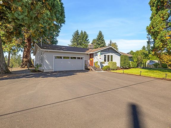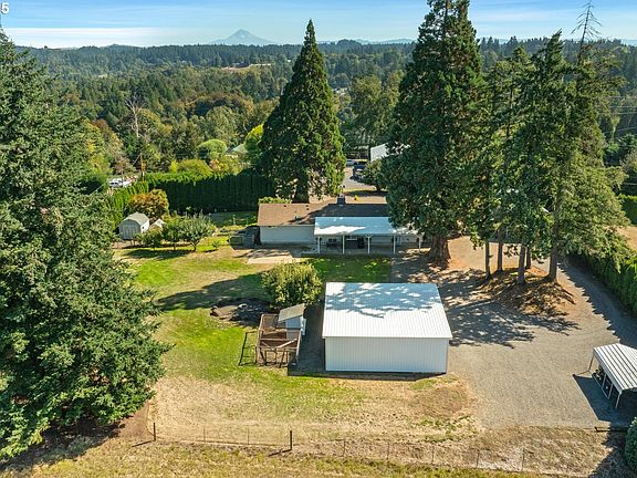 Meticulously maintained on 1 acre, just minutes to town! Many updates within the last few years including a new roof, gutters, driveway, chimney, windows, siding, paint & electrical panel. Inside enjoy fresh updates to the kitchen with new appliances, cabinetry & countertops. New flooring throughout, new interior paint, cozy wood burning fireplace on the main level & gas fireplace insert at lower level family room! All main level living with finished basement & storage room. Forced air gas furnace & whole house fan for cooling. Outside you will find a Mt. Hood view out front & plenty of space out back. Exterior features a workshop with shop space & a finished office. Large lean-to at back of shop for storage & parking. Oversized RV cover to store your toys too! Fully fenced, beautifully landscaped, private yard with so much room to roam. Many fruit trees, fenced garden, raised beds, greenhouse, tool shed & a coop your chickens will love. The big covered backyard patio & firepit with territorial views create a haven for relaxation & entertainment. So clean & well cared for. Ideal location near schools, shopping, restaurants & parks. Country living, yet only minutes to city & freeway access making your commute a breeze. Welcome home!