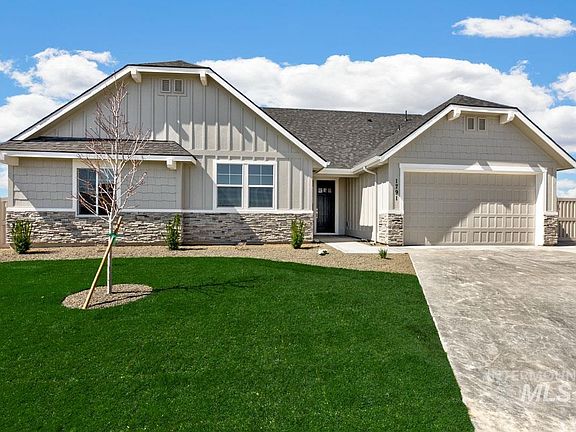 Welcome to the Centennial, Sunrise Home's well thought out 3 bed, 2 bath home! As you enter, you are welcomed by this home's open floor plan with beamed ceilings, gas fireplace with mantel surrounded with built-in cabinets, and laminate flooring. This beautiful home boasts tile backsplashes and quartz counters adorning both kitchen and bathrooms. This home is fully landscaped and move in ready.