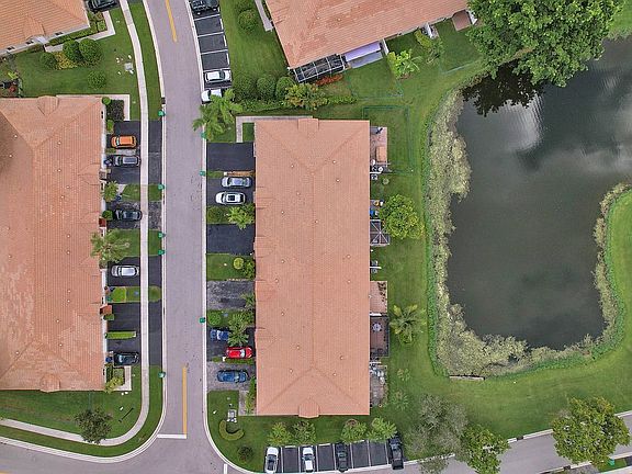 A former model home that included some interior design details that made the unit more elegant. A 2 Bedroom and 2 Bathrooms, a covered terrace with a screened patio with a wonderful lake view, ideal for social gathering and barbecuing. A master bedroom with a master bath & a walk-in closet, a second bedroom next to a second full bath. Also a very convenient enclosed 1 car garage that can be used as a storage since the front drive way can accommodate up to 3 cars. Accordion shutters were added for more hurricane protection. The H.O.A. covers for landscape maintenance, roofing and outside insurance protection. Being a 1 story unit keeps family members away from stairs and it associated risks.