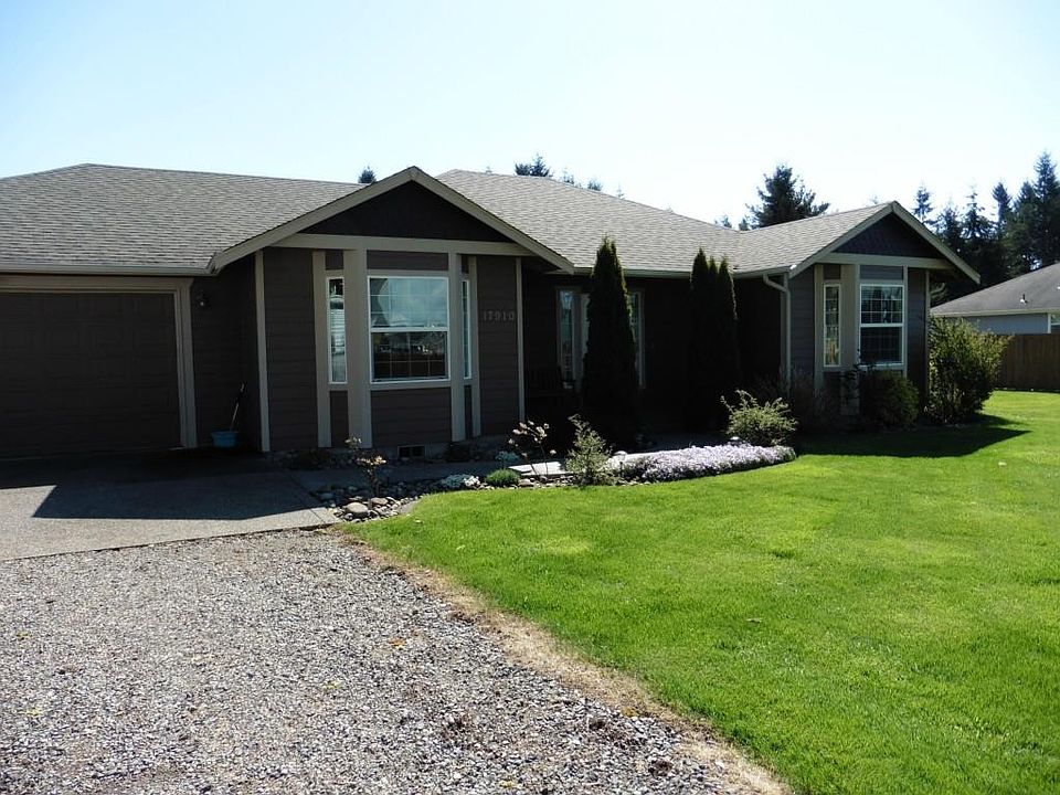 Great single level home in a secluded neighborhood, yet close to town and I-5. Split bedroom design. Spectacular oversized master with 5 piece baht, full walk-in shower, corner garden tub. Office/exercise room off master. Door to patio. Great room concept with easy flow from dining to kitchen to living room. Nice sized bedrooms 2 and 3 with full bath between. Lot is partially fenced. Room to park RV or toys. Propane stove in kitchen and fireplace in living room. Room for everyone to run.