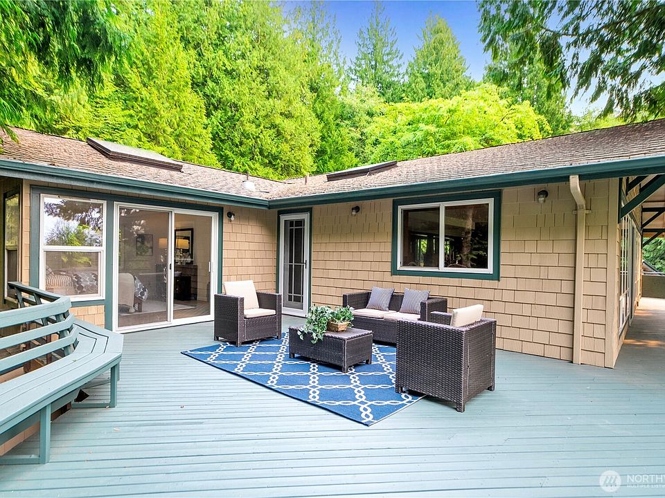 This property is one of a kind - Truly a hidden paradise, offering peace and tranquility amidst the bustle. The gorgeous home offers views. Upper level features an open, renovated living, gourmet kitchen, and spacious primary suite. A large deck creates a seamless indoor/outdoor experience. The functional lower level includes two beds, a bonus, abundant storage and workspace. What makes this property especially rare and desirable is its over 5 acres of flat natural land and forest with lush landscaping. A private driveway provides ideal privacy while still being in a convenient location. And a huge partial finished outbuilding offers endless possibilities and potential. Opportunities like this don’t come along often. Good Issaquah Schools.