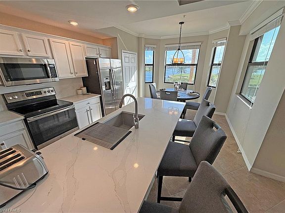Experience luxury living at its finest in this stunningly updated, turnkey furnished Bellini floor plan condo in Bonita National, perfectly located right next to the Club. Positioned on the third floor, this 2-bed, 2-bath residence offers expansive southwest lake views that are simply unforgettable. Step into an airy, open-concept space, where an upgraded white kitchen steals the show with Italian Carrara quartz countertops, equal backsplash, and a spacious island — all complemented by sleek stainless steel appliances. Recent updates add a touch of elegance, including luxurious vinyl plank flooring in the bedrooms (no more carpets!), quartz countertops in baths with contemporary sinks and faucets, a fresh paint palette throughout the unit, and tiled flooring on the inviting lanai. The building includes an elevator for easy access, plus your own assigned carport and same-floor storage unit. As a resident, enjoy Bonita National’s incredible amenities: a state-of-the-art fitness center, a sparkling resort-style pool with waterfalls, 8 professional tennis courts, 2 restaurants and bars, a salon, and spa. With social membership included, you’ll have access to all these exclusive features at a lower annual fee, and still golf privileges from May to October. A rare blend of luxury and investment potential, this condo offers flexible rental opportunities — allowing for 12 leases per year with a minimum of 30 days each. And with a rental already in place from January to March 2025, you can start generating income right away. Don’t miss the chance to own this exceptional home — schedule your showing today!