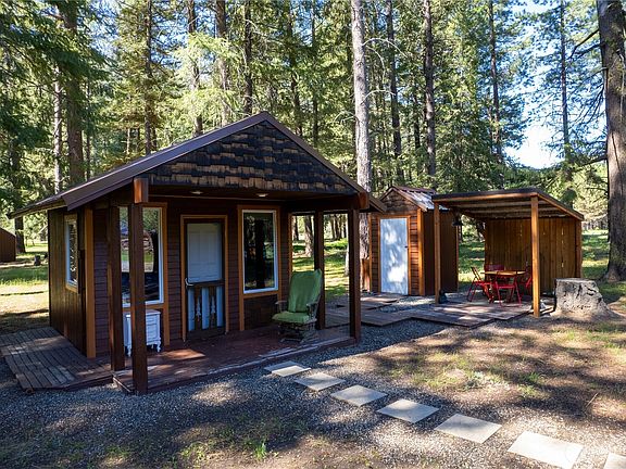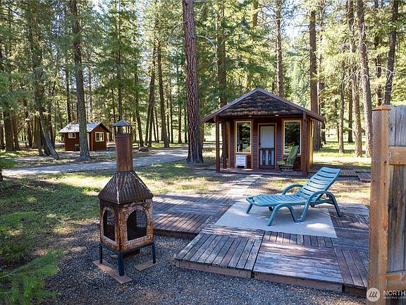 Mazama- OWN YOUR OWN CAMPGROUND! Just pack your clothes & picnic basket because this property is set up for immediate use & instant access to the North Cascades! Property sits on 2.57 acres w/ views of Goat Peak. Trail access for biking & x-country skiing. Invite your friends for an epic gathering spot close to downtown Mazama! But that's not all. This property is build ready: Strong individual well, 2bd septic installed, a 3 car garage, and an established, level build site. Two sleep cabins, outdoor kitchen, outdoor shower, privy & fire pit. Come camp, play, & make plans for your dream home! This is a rare property: well-maintained, inviting & private. You'll want to take a big breath of pine scented mountains and stay forever!
