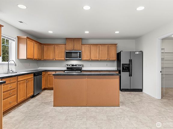 Welcome to Silver Creek! This move-in ready 2,670 square foot 4 bedroom, 2.5 bathroom home offers fresh paint, new carpet, and all appliances included. The open kitchen features a huge walk-in pantry and flows seamlessly into the living area with a cozy gas fireplace. The primary suite includes a spacious walk-in closet and a full bath en-suite for your comfort. Located on a quiet dead-end street, this home also offers a large 2-car garage and plenty of convenience. Puyallup Schools, close to shopping, dining, and entertainment. Don’t miss this wonderful opportunity!