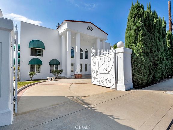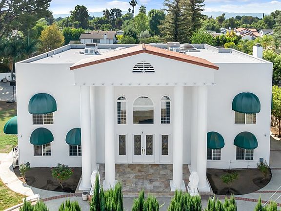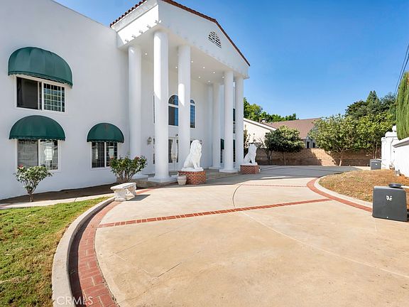 Sherwood Forest showpiece locally known as a playful replica homage to the late Elvis Presley’s Mini-Graceland residence, this estate brings Hollywood flair to a prestigious neighborhood while delivering serious space on a massive corner lot—grand in scale, timeless in presence, and loaded with possibility. 3 gates secure this massive half an acre corner compound lot wraps around to Zelzah features a long, RV-friendly driveway (former horse-stable access), an impressive roman columns entry opens to marble flooring, soaring ceilings, and statement chandeliers. The main residence offers formal living and formal dining rooms, a generous family room, a downstairs office (potential 4th bedroom), rich original wood details, and a huge upstairs loft—ideal for media, play, anchored by a built-in bar for effortless hosting. The main home features 3 main bedrooms and 3 baths, plus the office/4th bedroom blending classic finishes with older yet valuable upgrades ready to enjoy or reimagine to your taste. A Large master, with 2 walk in closets, and a step up double door roman bathroom with the center jacuzzi with roman columns and a jack and jill. Here the kitchen is built for real cooking and easy entertaining. Think generous custom cabinetry (including deep drawers and a walk-in pantry), and a full suite of stainless appliances built in fridge and double ovens, a 5-burner gas cooktop overlooks the backyard and Elvis style heart-shaped pool for resort feel. The layout connects smoothly to the family room and formal dining, so you can serve and mingle without bottlenecks. An excellent canvas for any modern refresh. Out back, the grounds a private compound, heated pool, grass area for volleyball or room for basketball/pickleball court, covered Built in BBQ with pergola, a built in firepit for seating and multiple parking courts—perfect for toys, trailers, or an RV. A highlight is the detached large guest house (~1,100 sq ft) perched above the 4-car garage, offering 2 bedrooms, connecting 1 bath, living room, and a balcony/expansive patio overlooking the property—excellent for multi-generational living, guests, business, or potential rental. 17912 Parthenia Avenue captures the grandeur and privacy that define Sherwood Forest—plus a wink to rock-and-roll legend. 2 driveways (including a circular drive), three gated entries, and true indoor-outdoor flow, this is an entertainer’s canvas and a rare Sherwood Forest opportunity. Bring your vision to elevate or customize.