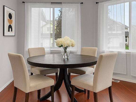 Elegant and inviting! Vaulted ceilings and abundant natural light fill this beautiful home nestled in gated Rainier View Court community w/neighborhood playground. Main-floor primary suite offers serene retreat with luxurious 5-piece bath and two spacious walk-in closets. Enjoy cozy evenings by the gas fireplace, cool summers with CENTRAL A/C, and seamless connection with high-speed internet. Upstairs features Jack-and-Jill bath, generous bedrooms, loft landing, and flexible office area perfect for working from home. New roof & gutter system (2024). Low maintenance fenced yard giving you weekends free. This Frederickson/Tacoma home brings bright open layout, blending comfort & style, and convenience. Close to shops, parks, arterials,& JBLM.